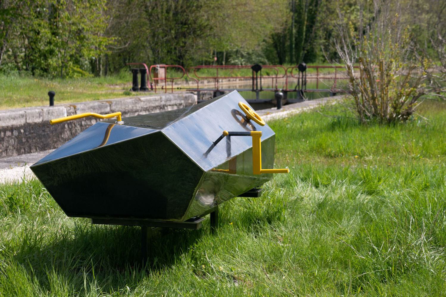 L’Éclusophone est une sculpture sonore interactive visant à faire chanter le canal de Bourgogne. En permettant aux promeneurs et bateliers de s’approprier les sons métalliques et mécaniques des écluses, l’Éclusohpone redonne à ces infrastructures une nouvelle voix et une autre façon d’aborder le canal.